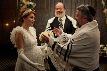 The Other Story (Sipur Acher)- Nesher hit on a clever way to fulfill the Culture Minister’s mandate to focus more on the Orthodox in government-supported films, while not turning off the larger secular audience who actually goes to the movies: by featuring baalei teshuva (secular Jews who become Orthodox) and the panic that causes in their families. Amusingly, several of the characters seem to be suffering from “Jerusalem syndrome”, usually described as the mental phenomena of religiously-themed obsessive ideas, delusions or other psychosis-like experiences that are triggered by a visit to the city”, such that it could be worse on those who live there. The hard-driving real estate agent divorced mother “Tali Abadi” (played by Maya Dagan) is frantic that her daughter “Anat Abadi” (Joy Rieger of Virgins (Vierges/Ein Betulot Bakrayot)) and long-time boyfriend, from their wilder days, are approaching their traditional marriage: They won’t see [her grandfather]. It’ll end with total rift, even with me. And when she’ll have kids -real soon – she won’t let me see them. Heaven forbid I don’t lead them astray! She gets the estranged father to return from his messed up U.S. business deals to spy on the ex-pop star boyfriend “Shahar Elkayam” (singer-songwriter Nathan Goshen). The substance at the female seminary the daughter attends is only briefly heard, when a female teacher defends the combination of polygamist Biblical wives: Rachel is in the role of the loved one; Leah is in the role of the mother. The sages say they are like two beams holding up mankind.