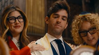 In writer/director/producer/star (as “Leo Kadner”) Jonah Feingold’s self-indulgent, interminable rom com, that is somewhat inspired by his own experiences as director of a Christmas movie and on the dating scene, there are many Jewish women in the 30-year-old’s flashbacks, fantasies, and relationships as he pursues an adult bar mitzvah and accompanying Mitzvah Project. (I myself was an adult bat mitzvah.) I could not catch all of these characters’ names to identify the actresses.