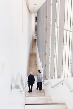 - Director/daughter Yael Melamede (r) walks with her architect/mother Ada Karmi-Melamede through the Lauder School of Government, Diplomacy and Strategy at Reichman University in Israel, designed by Karmi-Melamede. Photo Credit: Daniel Kedem, Salty Features