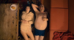 I would feel more positive about their view of Jewish women if the woman who Ethan Coen describes in the press notes as "the sexy, mysterious Mrs. Samsky" (played by Amy Landecker) was clearly ID'd as Jewish, but the neighborhood isn't all Jewish. Apparently childless with an ever-traveling husband and the only neighbor oblivious to the son's upcoming bar mitzvah, she brings hippie culture to the up tight neighborhood with sun bathing nude, smoking pot and seducing her neighbors into the pleasures of free love.
