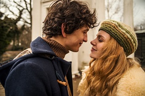 While the film’s poster looks like a conventional heavy-kissing romance, the above still, from the more intriguing third section about intimacy, features the main character “Avishag” (played by the director’s friend Elisheva Weil) with “Dror” (played by Yoav Hait), the older client of her dog-walking business, to whom she is more attracted than to the young man (played by the actress’s actual boyfriend Leib Levin) in the middle chapter with whom she has explicit sex. I was surprised that the cinematographer Meidan Arama and editor Or Lee-Tal are both male.