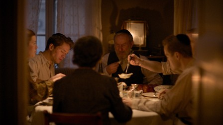 Taking us to a Yiddish Brigadoon, debut French director Ady Walter brilliantly immerses the audience into what was once Galicia on June 21, 1941. Where black-and-white is the present and flashbacks are in color, this last day for the town of Sokal is a place and culture that no longer exists in western Ukraine, just about 150 miles from where my relatives would also disappear in Hitler’s Operation Barbarossa. In a language frequently pronounced dead, the multi-national cast speaks Yiddish with such excellent diction I could understand the dialogue (co-written with Samuel Fischler) when the white-on-white subtitles were hard to read.