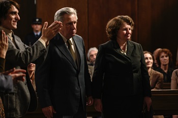 She Said - In scripter Rebecca Lenkiewicz’s adaptation of the account by New York Times reporters Megan Twohey and Jodi Kantor of investigating Harvey Weinstein and the Hollywood system that perpetuated his abuse of women (the subtitle of their book is Breaking the Sexual Harassment Story That Helped Ignite a Movement), one difference is emphasized between the two working mothers. Kantor (as portrayed by Zoe Kazan) is specifically Jewish, seen doing Shabbat candle-lighting with her husband and two young daughters, to using her experience in the Catskills with her Holocaust-survivor grandmother to gain the cooperation of a crucial source, Weinstein’s long-time accountant. (courtesy of Universal Pictures) (12/4/2022)