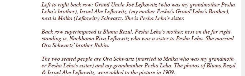 Seine Malke, the third child of Blume Reizul and Rifoel Mordche, married Ora Schwartz. They had no children but "adopted" and raised Rifoel Mordche (Philip) (the second son of Peshe Leah). This, of course, is why his name is Schwartz while his brother's name and sisters' maiden name is Lefkowitz.